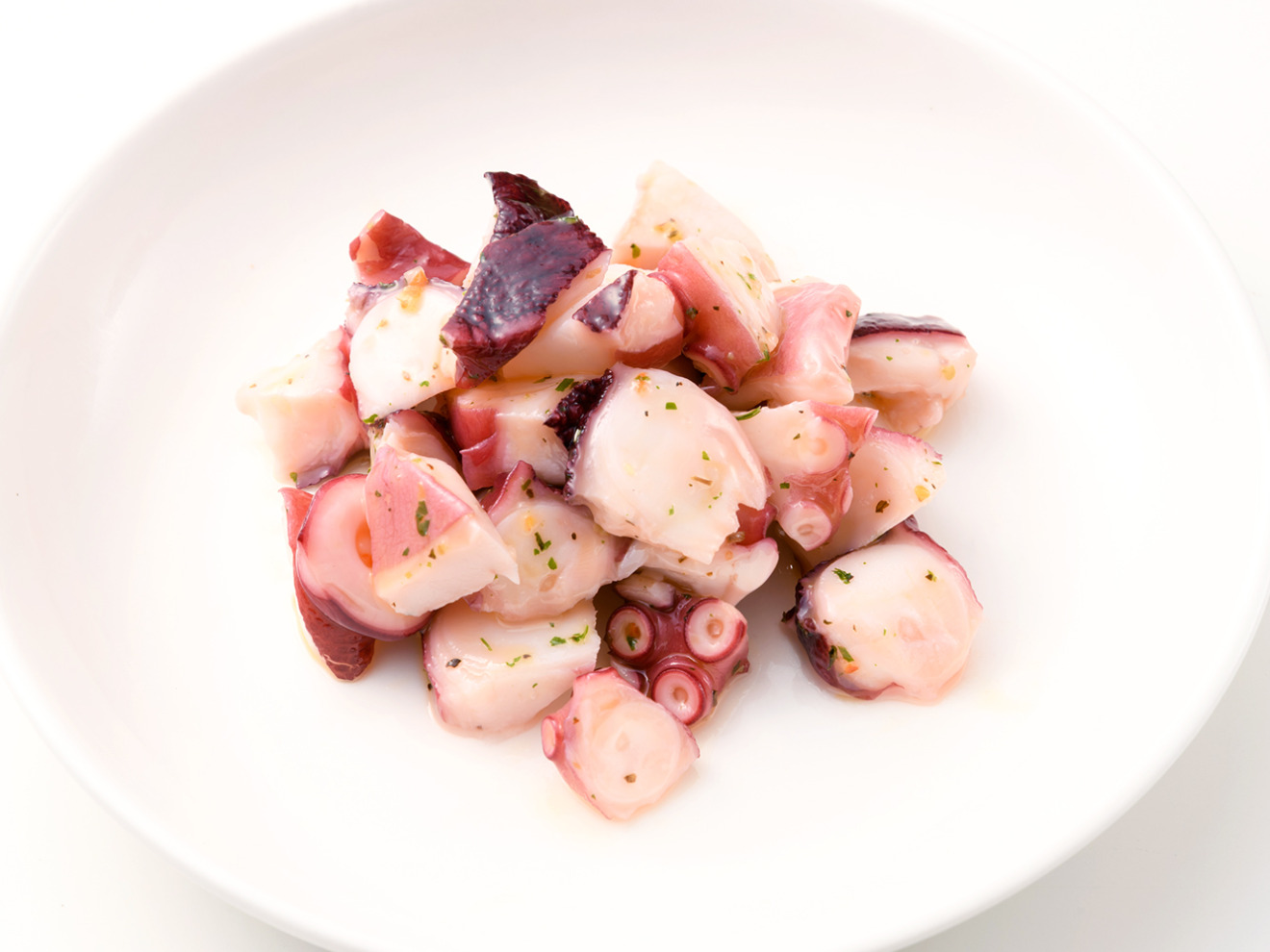 蛸の美味しさを引き立てるバジルを中心にハーブ、香辛料をブレンドしたソースを絡めました。お酒のおつまみはもちろんのこと、パスタと和えたりサラダなど、イタリアンな蛸をお楽しみいただけます。